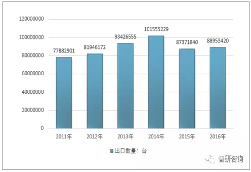 2011-2016年我國空氣壓縮機(jī)出口數(shù)量走勢(shì)圖(單位:臺(tái))